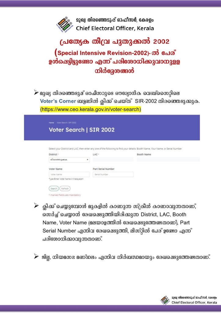 Read in Malayalam: Full Instructions to Download SIR 2002 PDF List