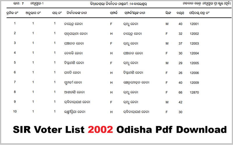 The SIR 2002 Voter List is an official record of all registered voters in Odisha from the year 2002. It was created during a “Special Intensive Revision,” a process where officials go door-to-door to verify every voter.