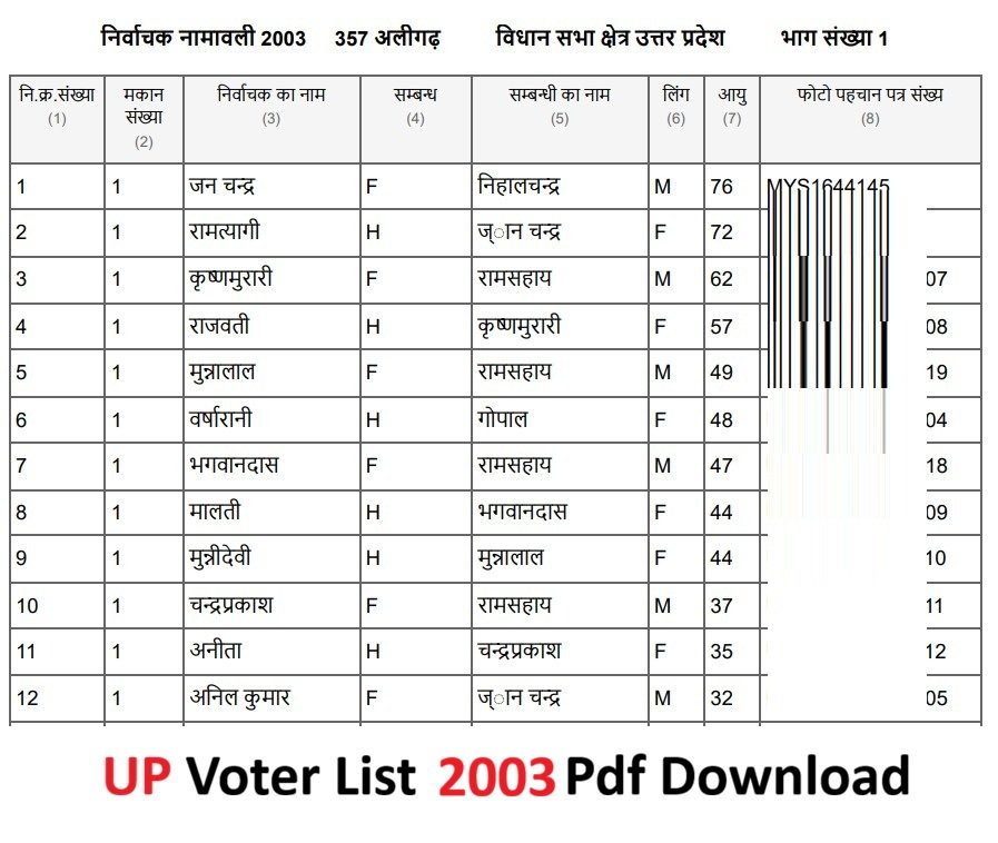 Voter List 2003 Uttar Preadesh – उत्तर प्रदेश 2003 की मतदाता सूची यहाँ से डाउनलोड करें