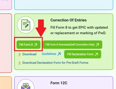 • Form 8 चुनें जो मतदाता सूची में सुधार के लिए है।