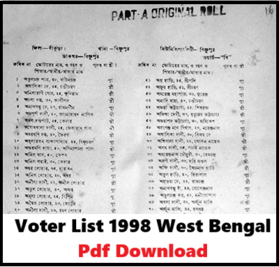 Voter List 1998 West Bengal Pdf Download by District Wise