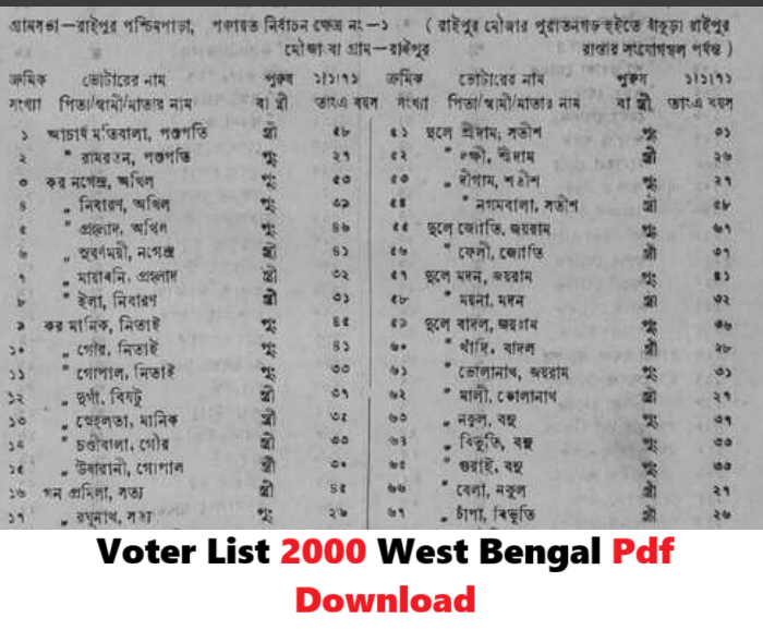 Voter List 2000 West Bengal Pdf Download (District Wise) – Available Here