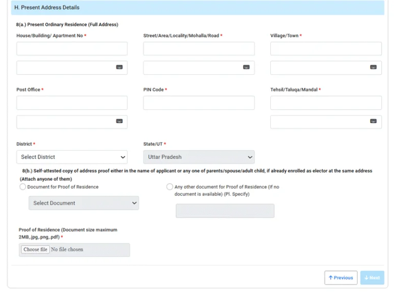 - अपना जिला, विधानसभा क्षेत्र (Assembly Constituency) और लोकेशन डिटेल्स भरें। जहां आप अभी रहते हैं, वहां का पता डालें (राजस्थान में जहां वोट डालना है)।